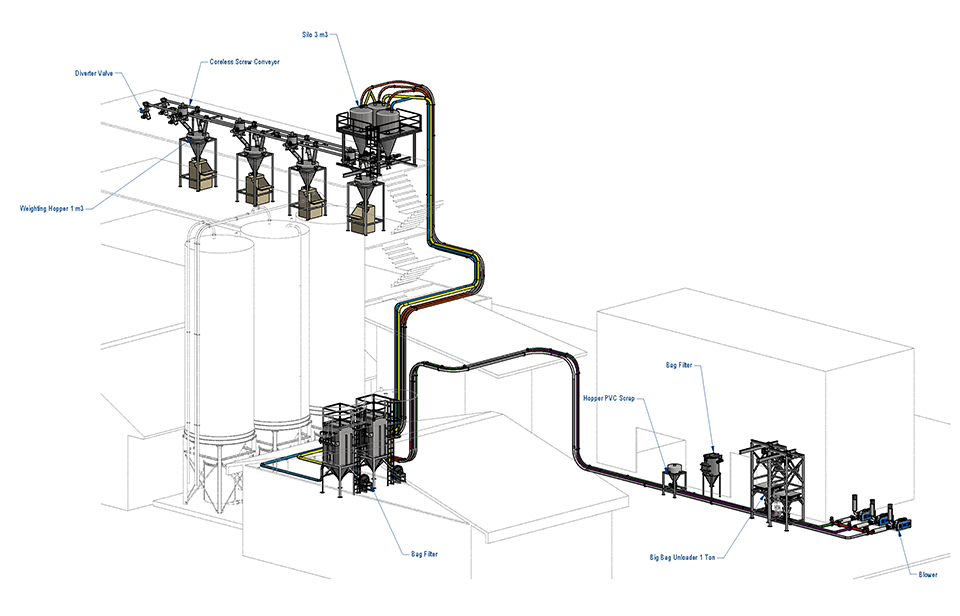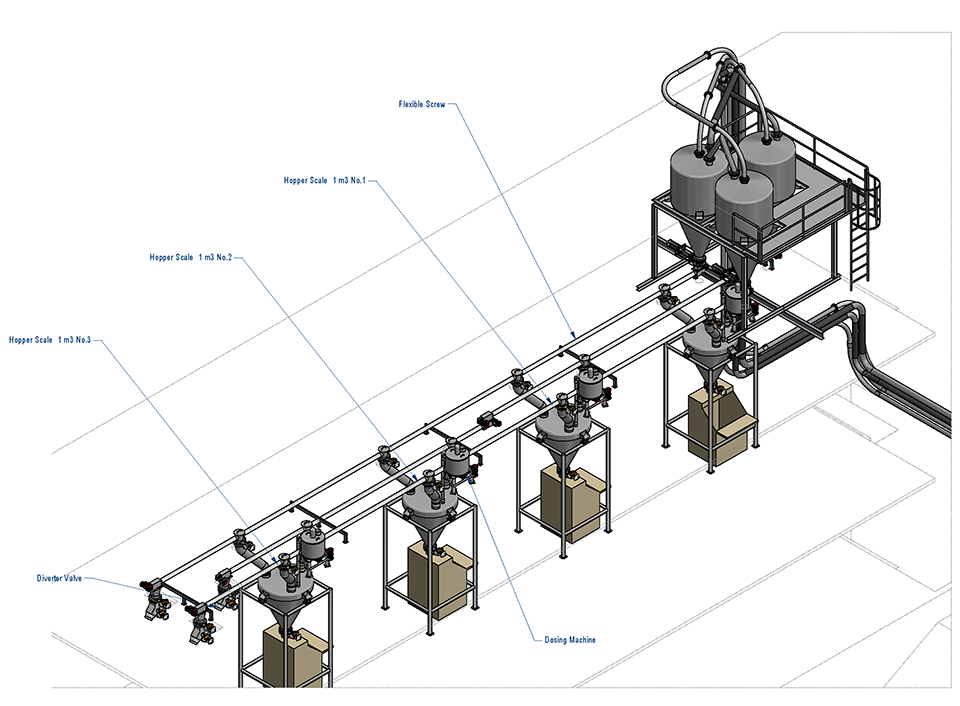 - Feeding system by Weighting Hopper, Micro dosing machine, Volumetric screw feeder, Rotary dosing valve, Butterfly dosing valve and etc.