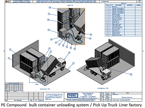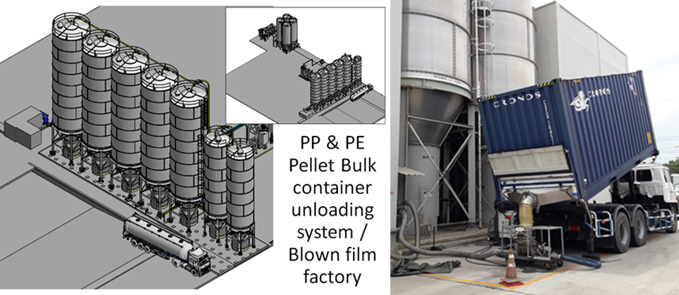 Bulk container unloading System- PP & PE Pellet Bulk container unloading system / Blown film factory- PE Compound bulk container unloading system / Pick Up Truck Liner factory |